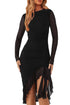 Women's Ruffle Hem Bodycon Midi Dress Mesh Long Sleeve Wedding Guest Long Dress Cocktail Party Dress Sexy Ruched Dresses