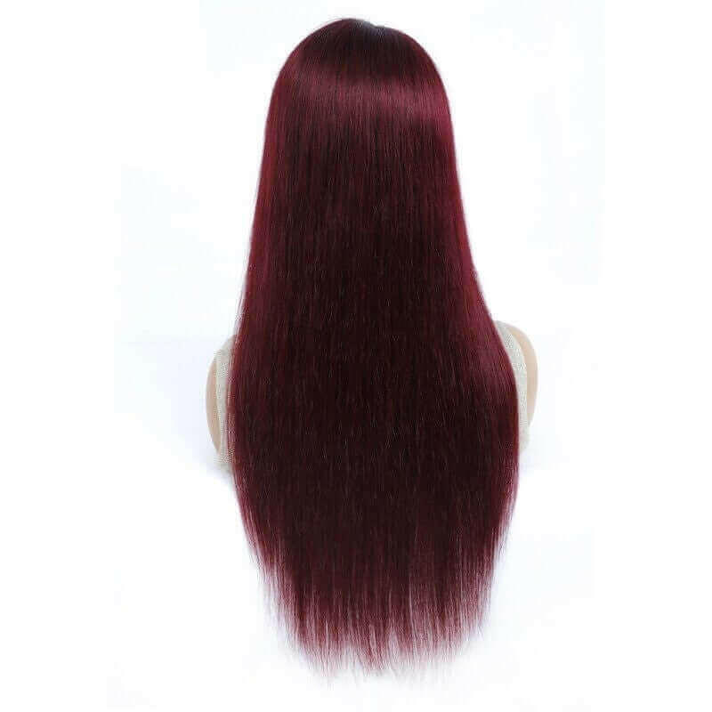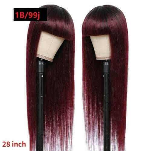 #1B/99J Brazilian Straight Human Hair Wigs with Bangs #99J No Glue Wig