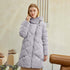 Warm Elegant Knitted Collar Women Coat Jacket Casual Pocket Parka Fashion Long Female Winter Windproof Jacket Light Grey