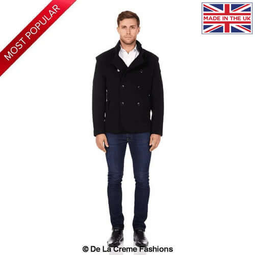 Introducing the De La Creme MAN - Men's Wool Blend Double Breasted Short Reefer Coat, a perfect blend of style and comfort. Crafted from a luxurious wool blend, this coat features a sophisticated double-breasted design that elevates any outfit.
