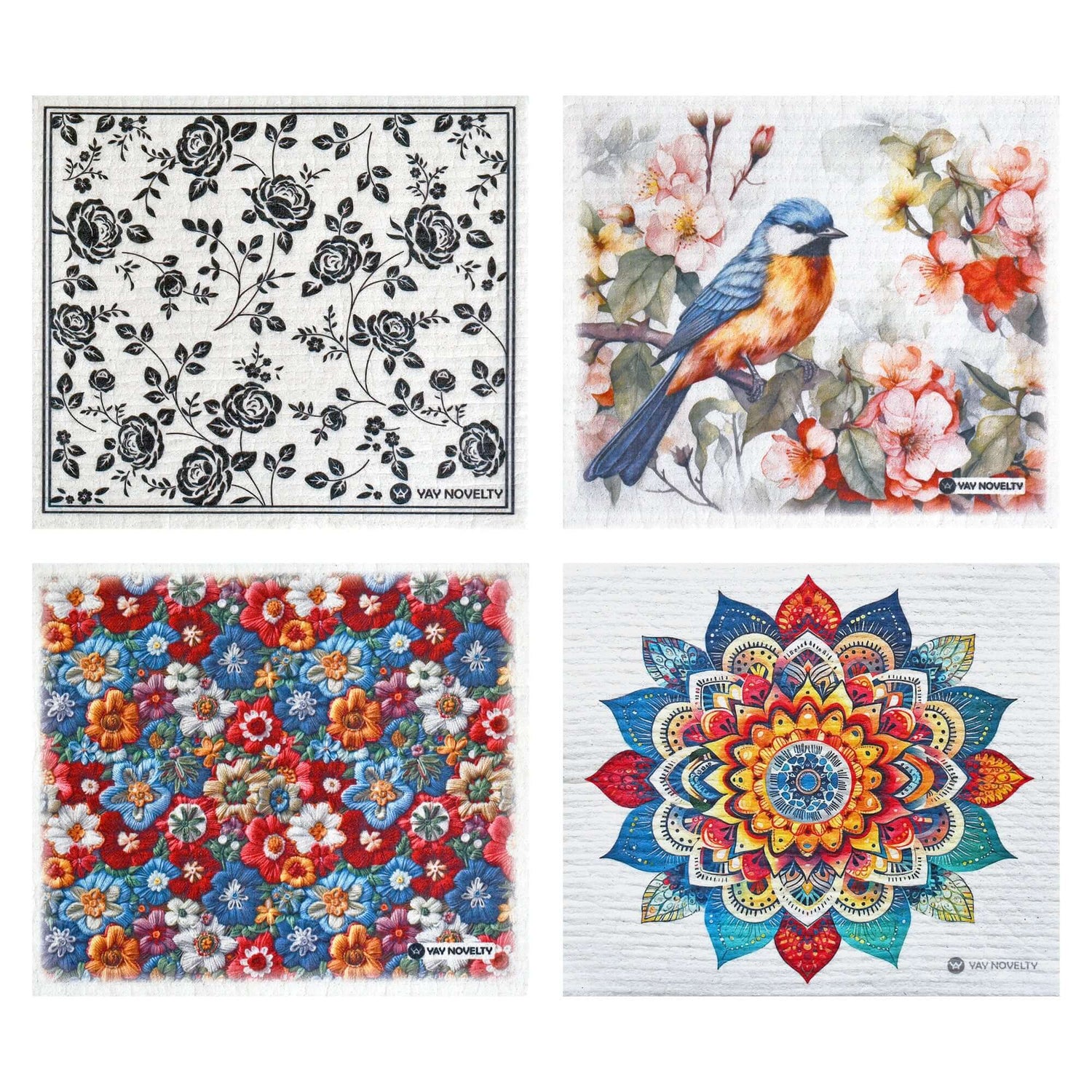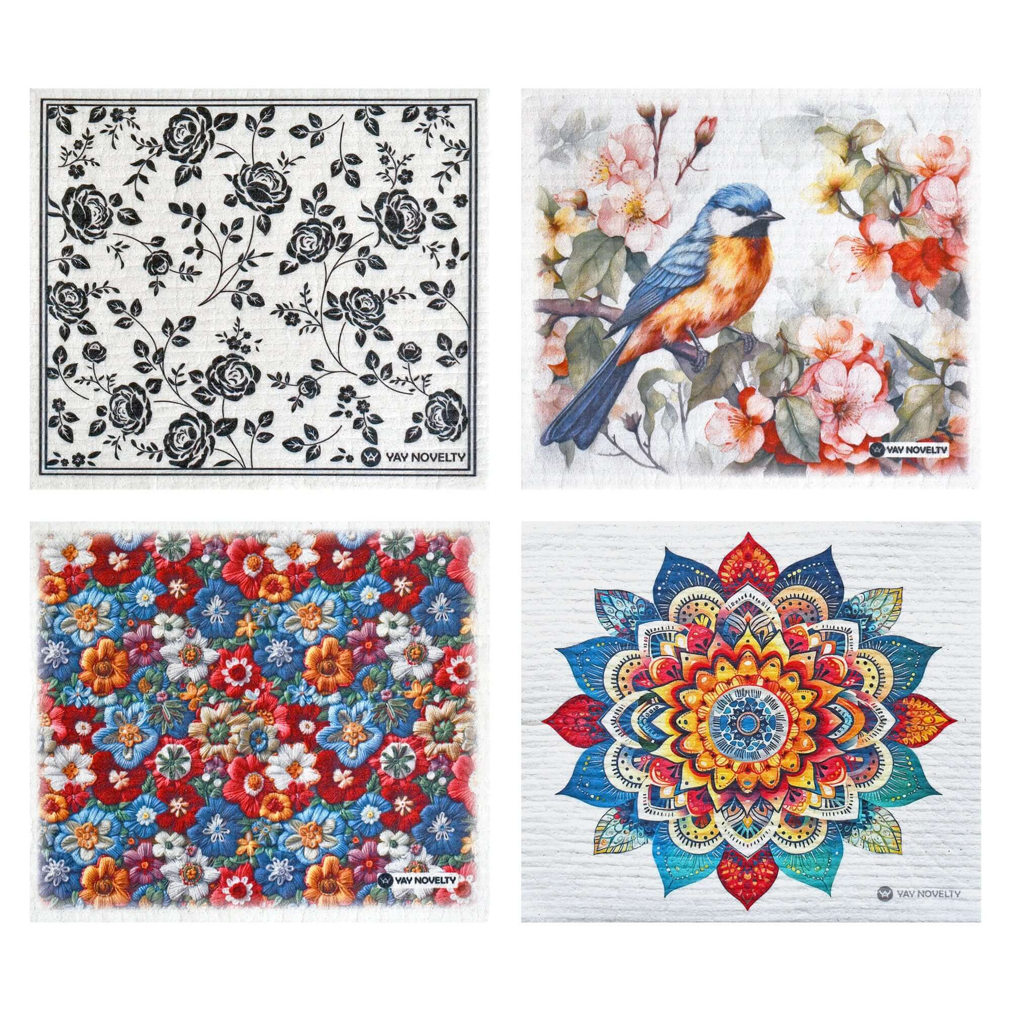 - Stylish Designs: Each pack includes 12 dishcloths featuring four unique and vibrant designs, with three identical cloths for each design, adding a touch of personality to your kitchen.