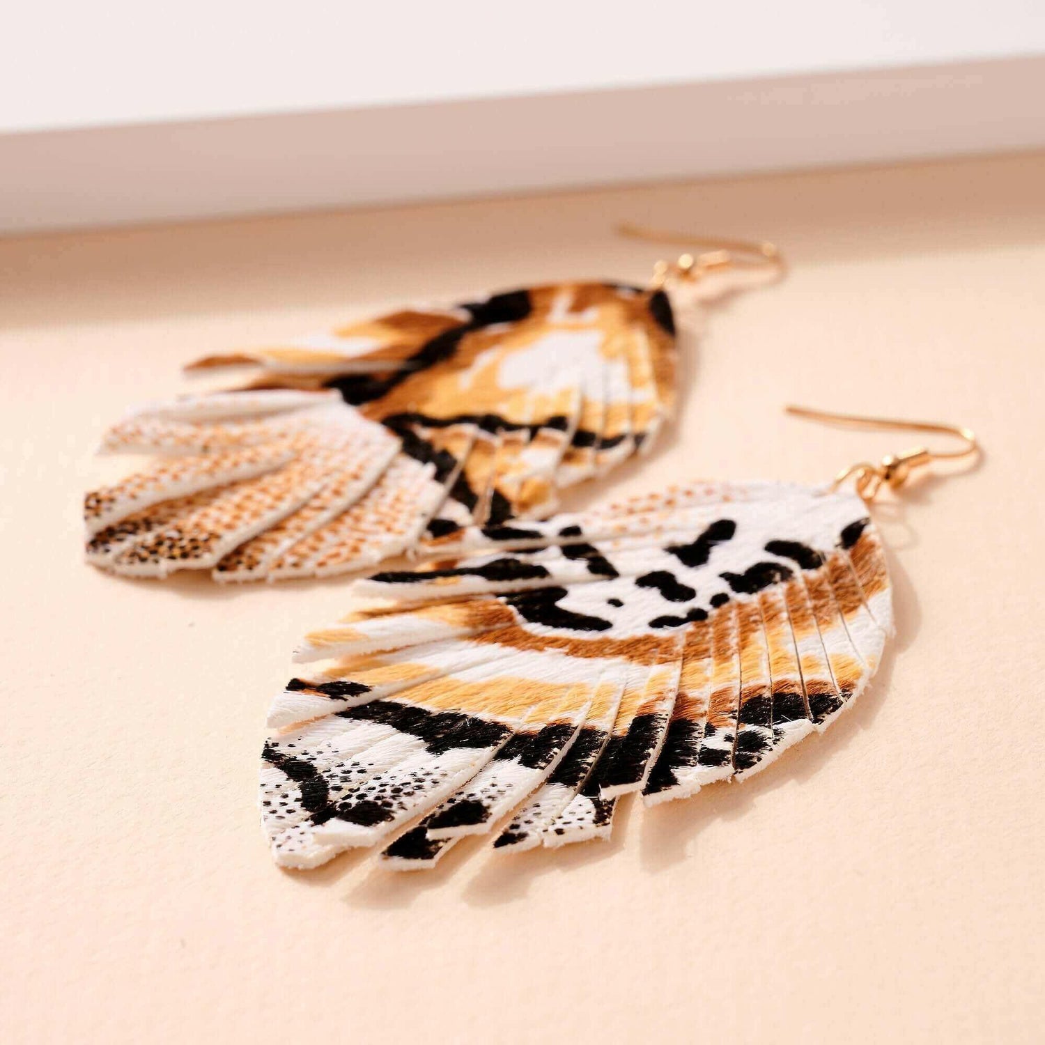 Upgrade Your Style with Animal Print Feather Dangling Earrings!