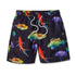 Make a Splash with Board Shorts Featuring Neon Fish on Black Sea Print