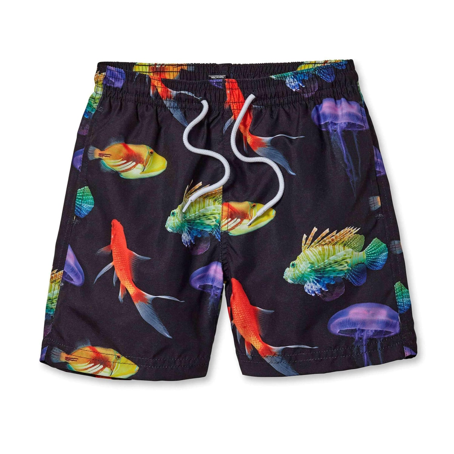 Take your swimwear game to the next level with our Board Shorts adorned with vibrant neon fish on a sleek black sea print. Crafted from a high-quality blend of 90% knitted poliamida and 10% elastan, these shorts are not just stylish but also offer comfort and durability for all your aquatic adventures.