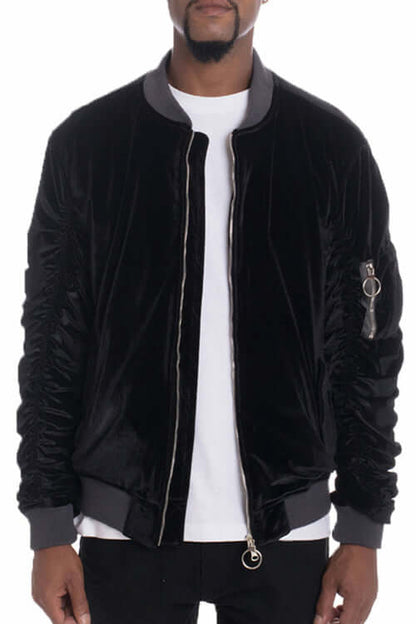 Velour Cinch Sleeve Bomber Jacket