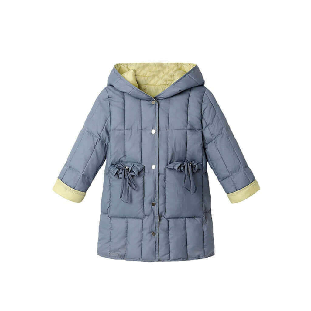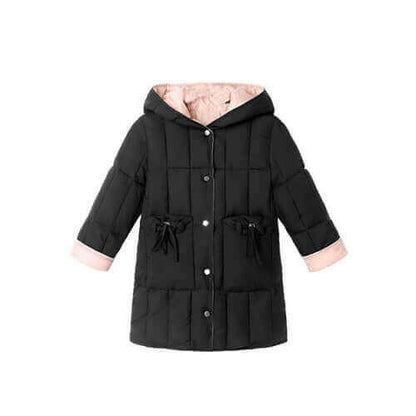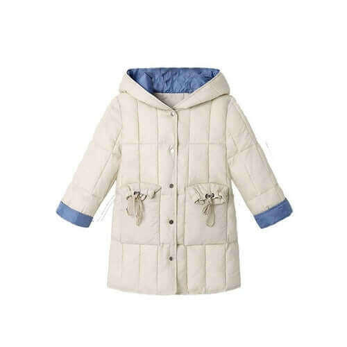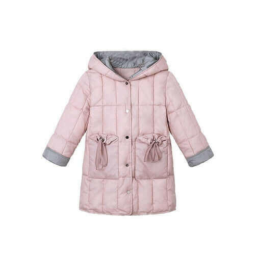 Not only is this coat functional, but it also has decorative elements such as pockets and a flower design on the hood. It is suitable for both casual and formal occasions, making it a versatile piece for your child's wardrobe.