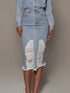 Introducing the Distressed Slit Denim Skirt, a must-have addition to your wardrobe that perfectly combines style and comfort. This chic skirt showcases a raw hem and a fashionable distressed finish, making it ideal for those who love a bit of edge in their outfits. Crafted from 100% cotton, the skirt offers a breathable and lightweight feel, ensuring you stay comfortable all day long.