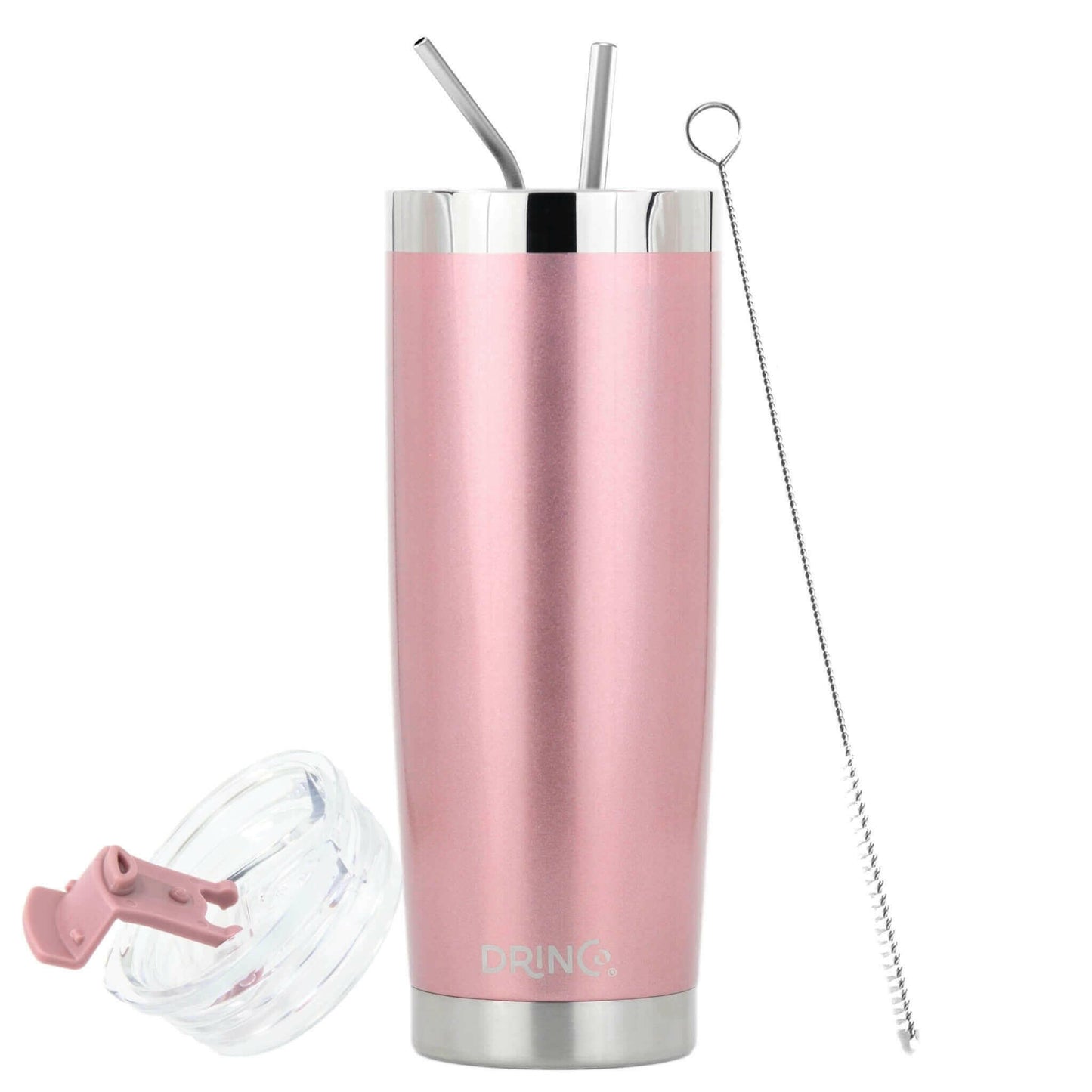 DRINCO® 20oz Insulated Tumbler Spill Proof Lid 2 Straws (Rose Gold)
