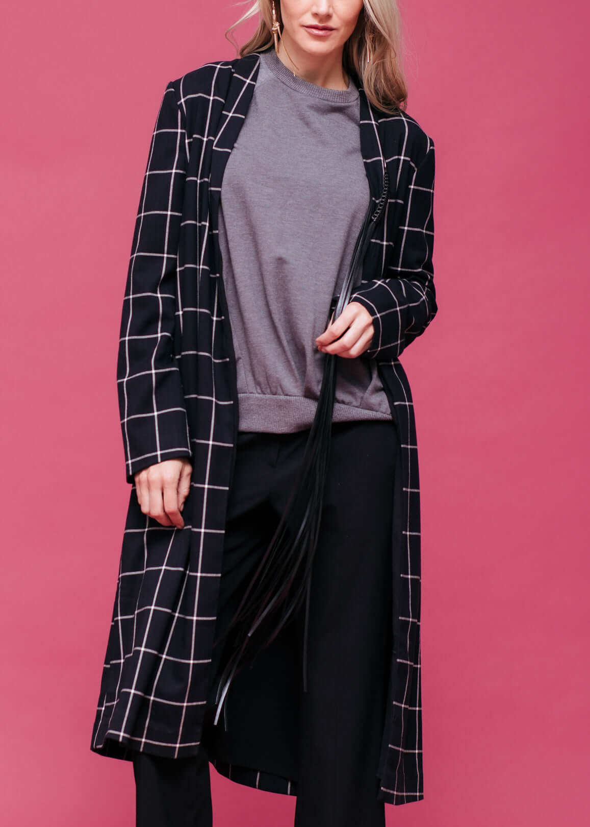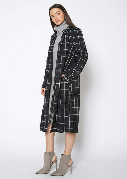 Transform Your Wardrobe with the Women's Minimalist Grid Longline Coat