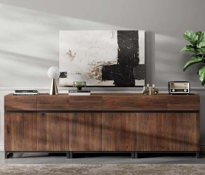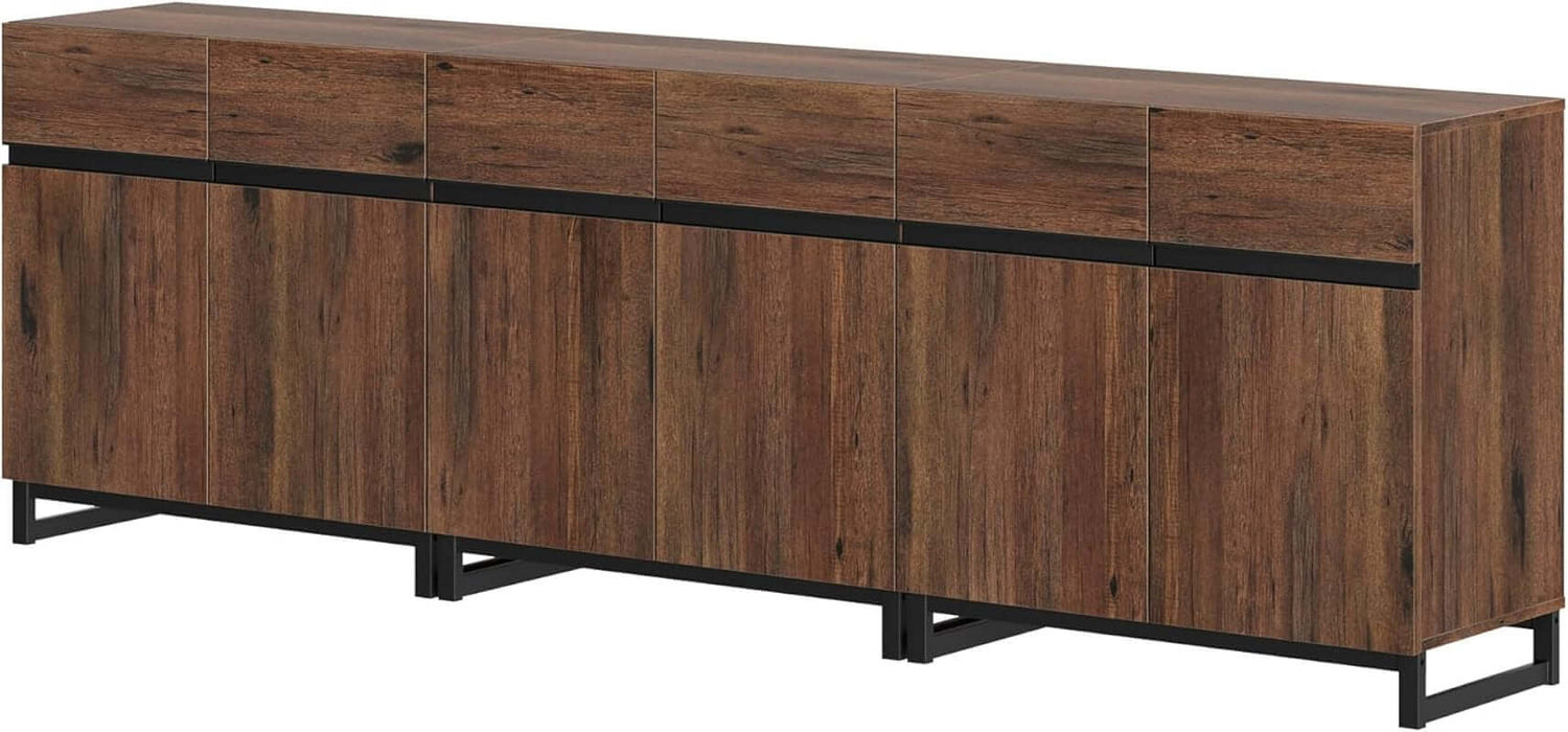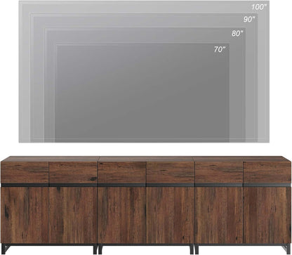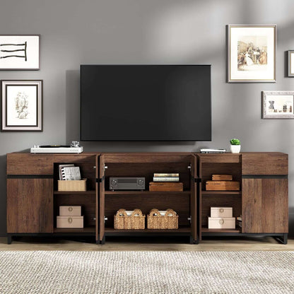 Modern Design: This sleek and stylish TV stand features concealed door handles for a clean appearance. With its walnut grain finish, it effortlessly enhances a variety of decor styles including modern, rustic, and pastoral themes, making it a perfect addition to any home.