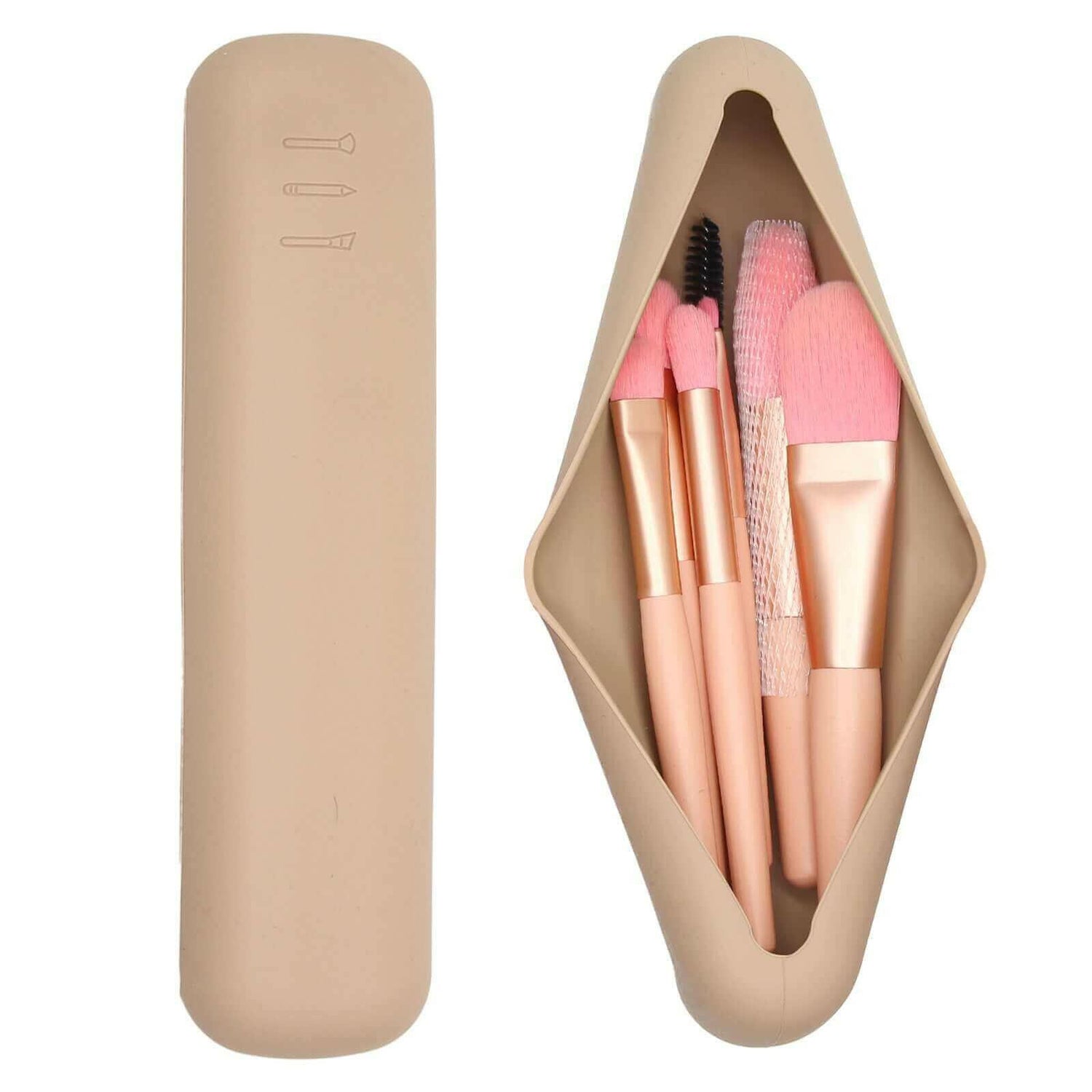 ECO-FRIENDLY NON-TOXIC SILICONE MATERIAL: The makeup brush holder travel is made of soft sleek silicone material, dustproof and waterproof. Durable and scratch-resistant, it easily protects your makeup brushes and your personal belongings.
