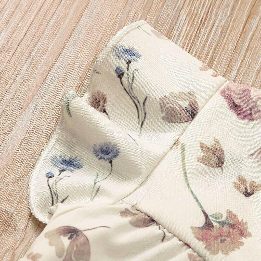 Relish in the bohemian simplicity of this adorable toddler set. Complete with a subtle floral top and a comfortable diaper hugging bottom, it is truly reminiscent of simpler days. The set includes a bonnet and bow tie ad available for toddlers ages 6M to 24M.