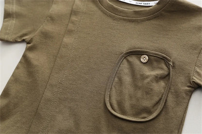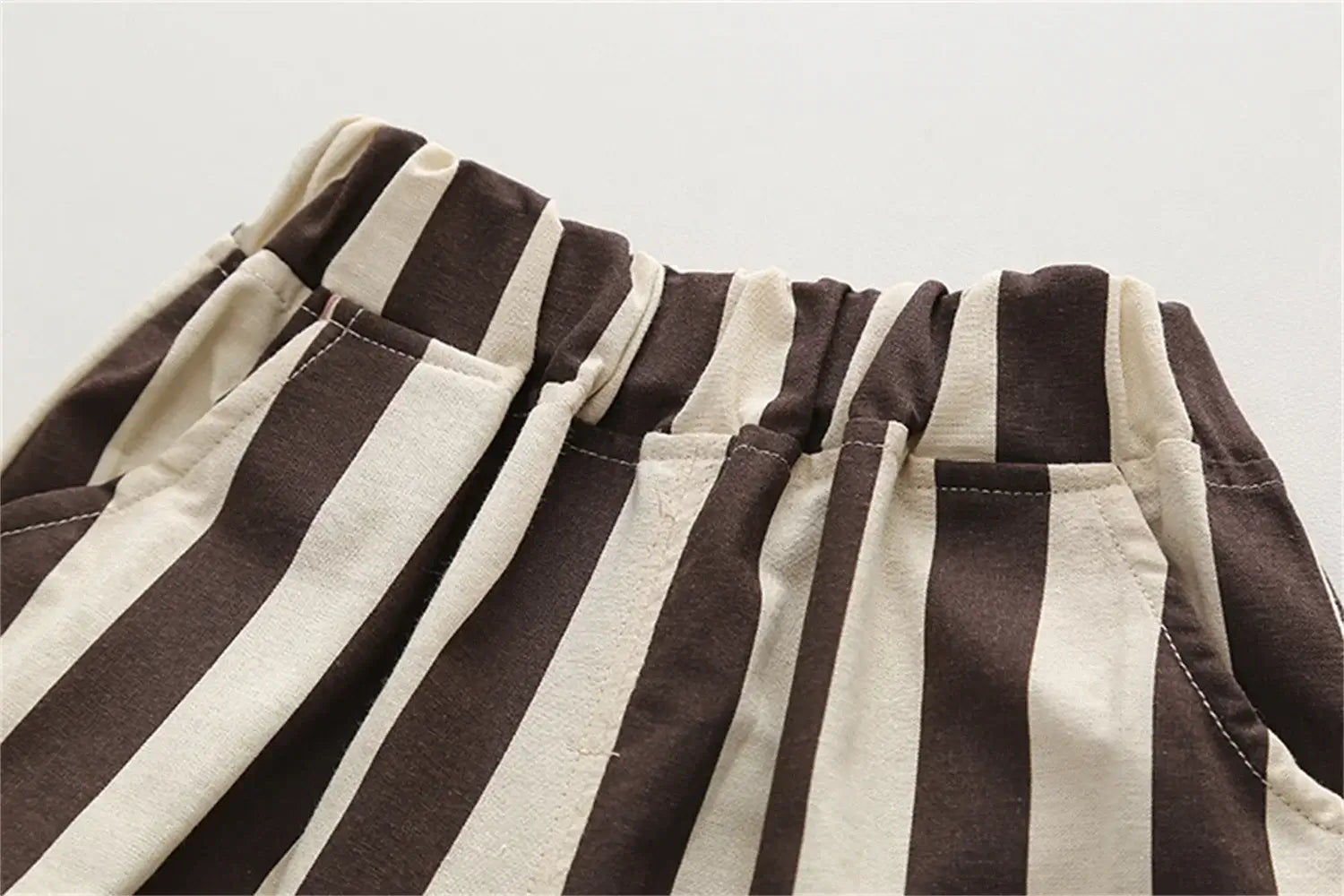 Crafted from a soft cotton-polyester blend, the breathable fabric is gentle on delicate skin. The O-neck collar and short sleeves provide a relaxed fit, while the striped pattern adds a playful touch. Ideal for infants celebrating their 1st birthday or just enjoying everyday adventures, this outfit is a must-have for every young boy's wardrobe.