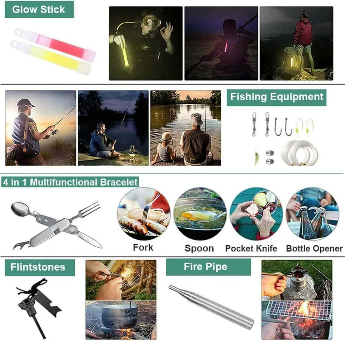 - Includes essential items for emergencies, outdoor adventures, camping, and more