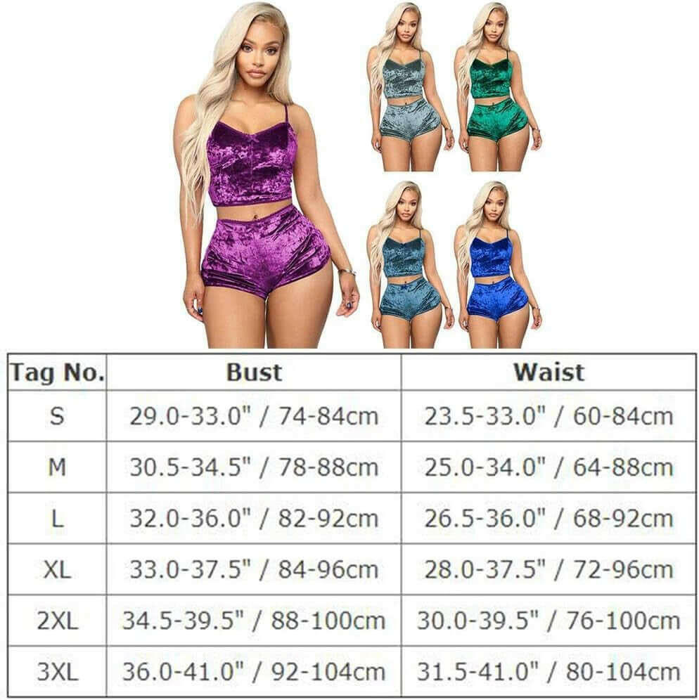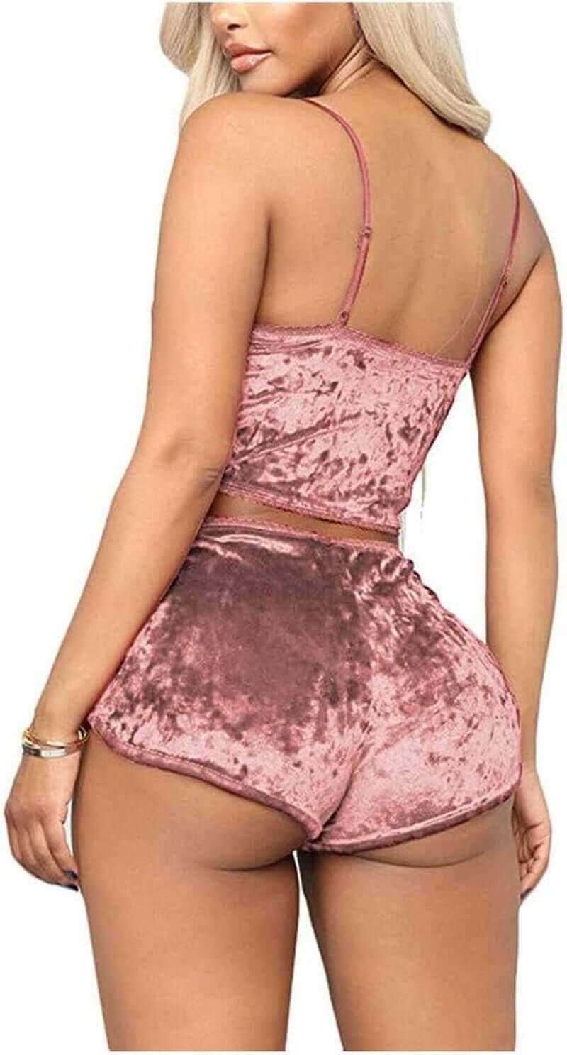 Womens Sexy Velvet 2 Pieces Romper Outfit - Spaghetti Strap Crop Top Camisole and Shorts Bottom Sleepwear Pajama Set