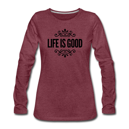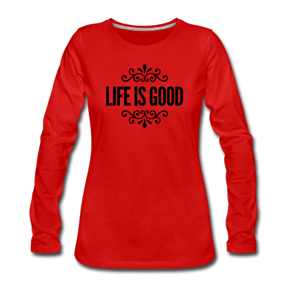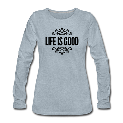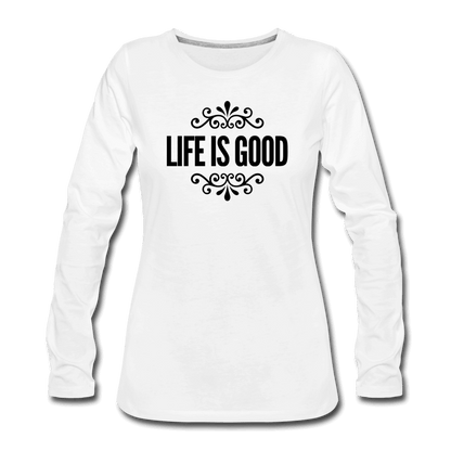 Introducing our newest addition to the collection - the Women's Long Sleeve Graphic Tee, featuring a beautiful 'Life Is Good' illustration. This premium t-shirt is designed to perfection, with an optimized fit for all types of print. It's soft, comfortable, and durable, making it a must-have for any wardrobe. Trust us, it will quickly become your go-to layer for any occasion.